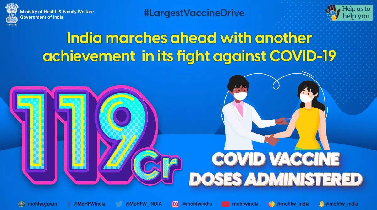 Moreover with the administration of 90,27,638 vaccine doses in the last 24 hours, India’s Covid-19 vaccination coverage has exceeded 119.38 crore (1,19,38,44,741) as per provisional reports till 7 am today. This has been achieved through 1,23,73,056sessions.