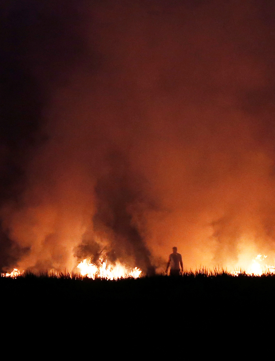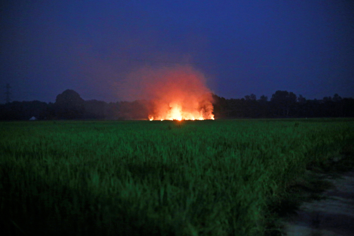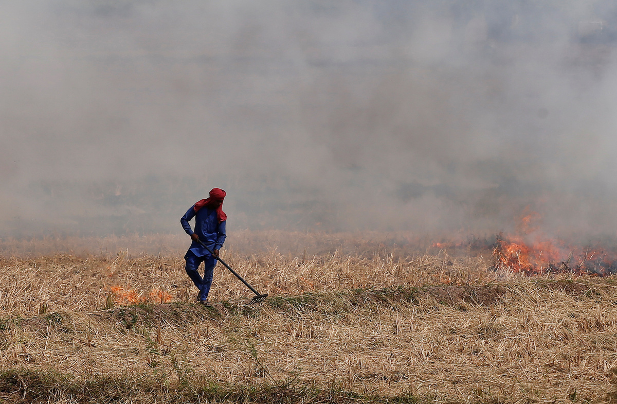 Farmers in Punjab and Haryana states, India's bread basket, start burning the residue of the previous crop to prepare for new plantings in November.