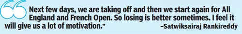 “We started off quite well but in the second game we were slow to start off, and in no time, we were down 5-11. From then on, it was quite difficult to come back and, yes, they (Kang and Seo) were quite a formidable defensive pair. Overall, we are sad, losing the final in our home tournament but there are a lot of positives, the last two weeks have been really good. We are still hungry and are not satisfied. We will start off again in the next few days for the All England and French Open,” Satwik said after the match.