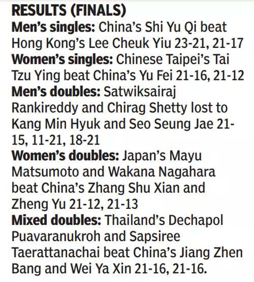 The Indians managed to close the gap to 18-19 and raised hopes of yet another come-from-behind win. But Seo’s cross-court push to Satwik’s forehand helped the Koreans earn their first match point and they made no mistake in wrapping things up on the very first attempt.