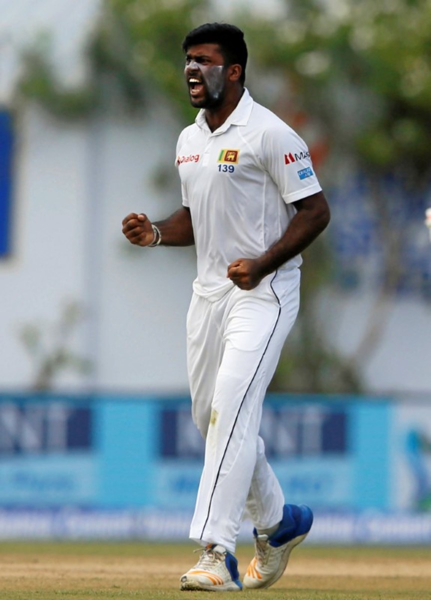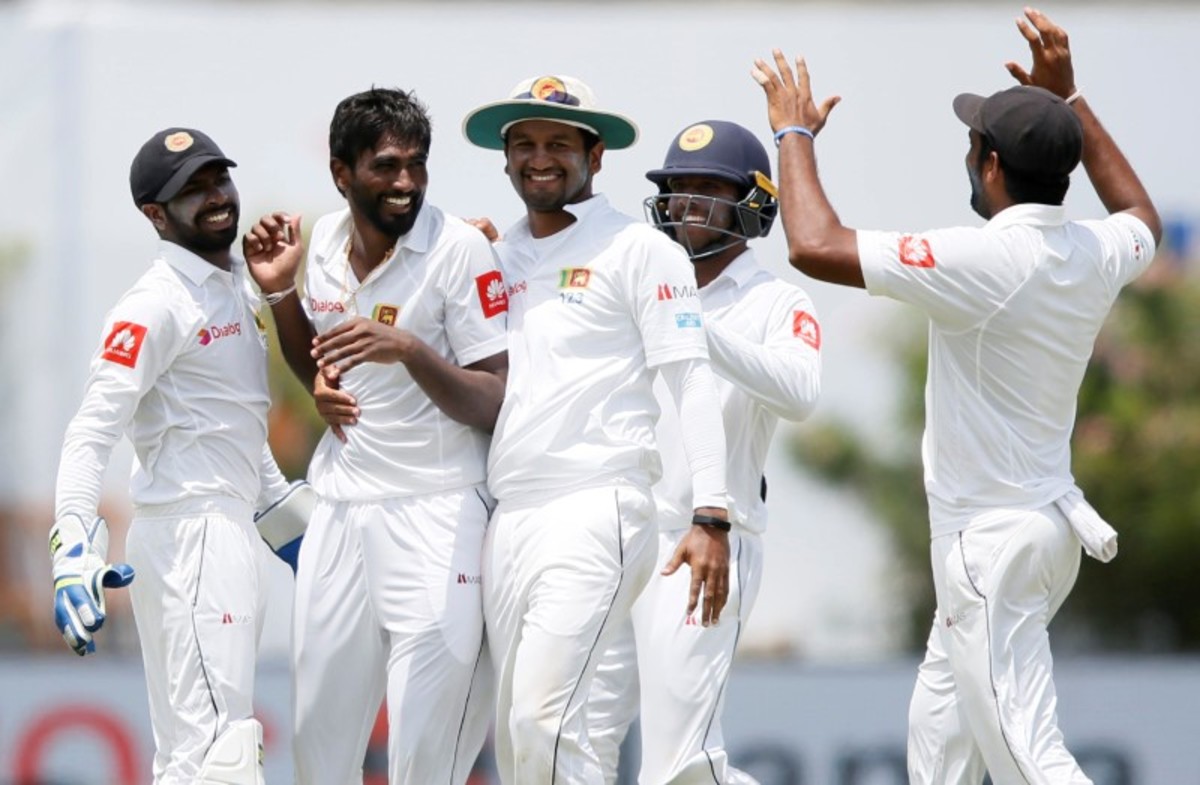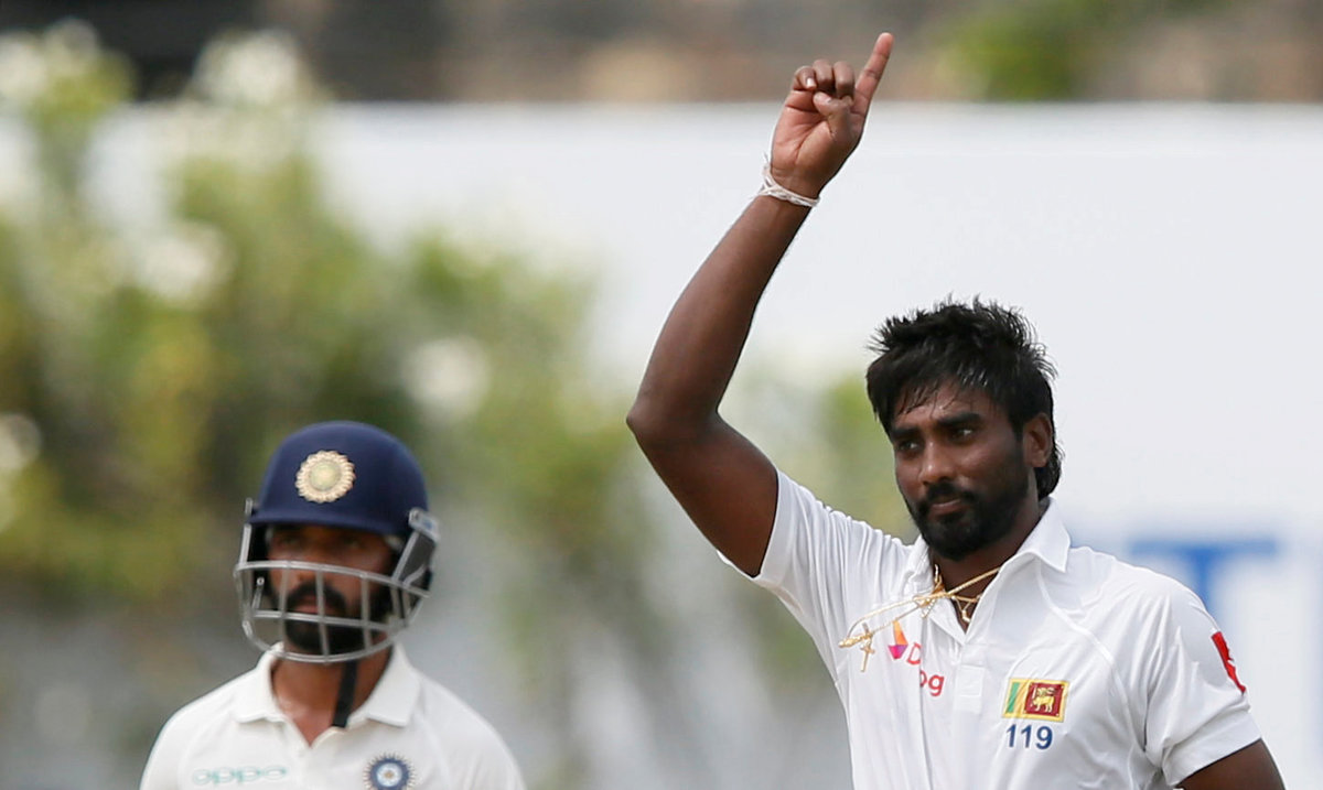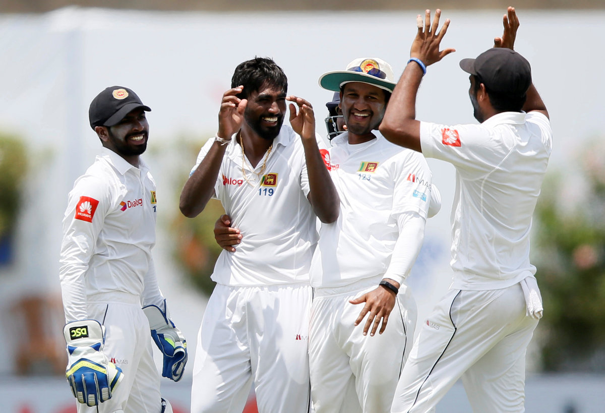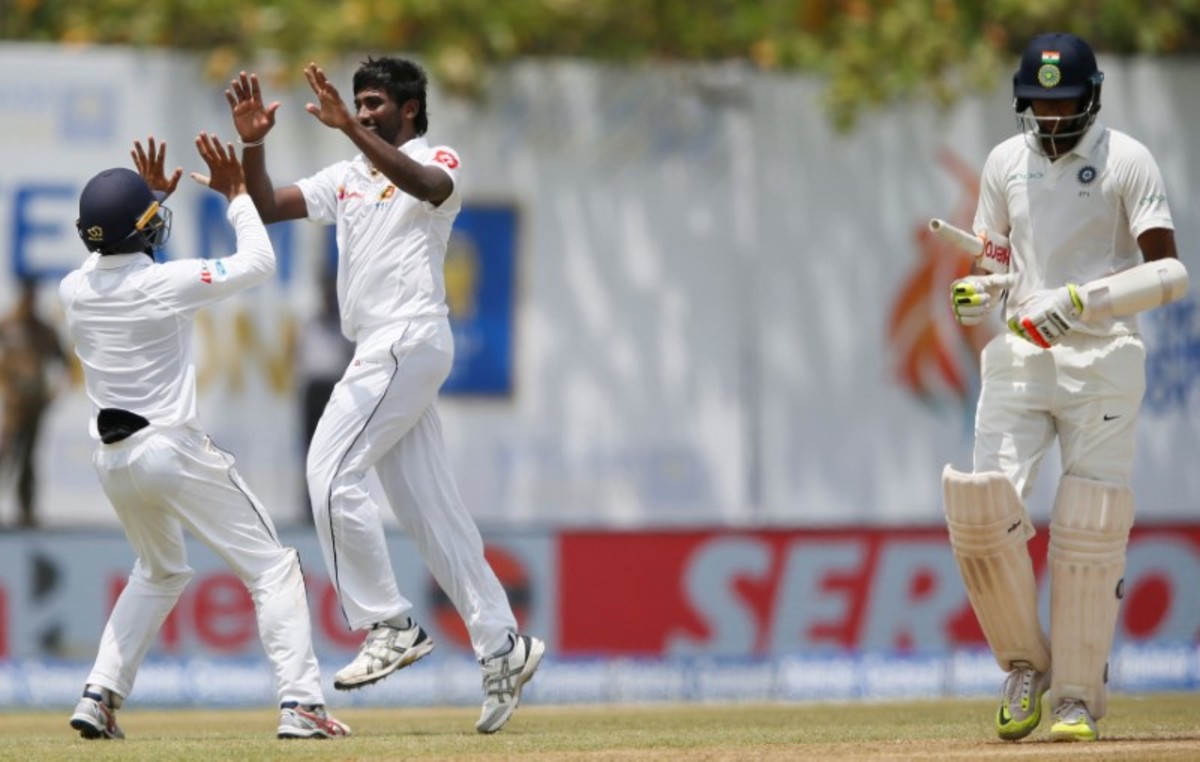 Sri Lanka v India - First Test Match - Galle, Sri Lanka - July 27, 2017 - Sri Lanka's captain Rangana Herath reacts as Indian cricket team's total runs shows on a display at the background. REUTERS/Dinuka LiyanawatteCricket - Sri Lanka v India - First Test Match - Galle, Sri Lanka - July 27, 2017 - Sri Lanka's Nuwan Pradeep celebrates with his teammates after taking the wicket of India's Ravichandran Ashwin (not pictured). REUTERS/Dinuka LiyanawatteCricket - Sri Lanka v India - First Test Match - Galle, Sri Lanka - July 27, 2017 - Sri Lanka's Nuwan Pradeep celebrates with his teammates after taking the wicket of India's Ravichandran Ashwin. REUTERS/Dinuka LiyanawatteCricket - Sri Lanka v India - First Test Match - Galle, Sri Lanka - July 27, 2017 - India's Ravichandran Ashwin and Wriddhiman Saha run between wickets. REUTERS/Dinuka LiyanawatteCricket - Sri Lanka v India - First Test Match - Galle, Sri Lanka - July 27, 2017 - India's cricketer Ravichandran Ashwin plays a shot. REUTERS/Dinuka LiyanawatteCricket - Sri Lanka v India - First Test Match - Galle, Sri Lanka - July 27, 2017 - Sri Lanka's Lahiru Kumara celebrates after taking the wicket of India's Ajinkya Rahane (not pictured). REUTERS/Dinuka LiyanawatteCricket - Sri Lanka v India - First Test Match - Galle, Sri Lanka - July 27, 2017 - India's cricketer Wriddhiman Saha reacts for a bouncer ball by Sri Lanka's Lahiru Kumara (not pictured). REUTERS/Dinuka LiyanawatteCricket - Sri Lanka v India - First Test Match - Galle, Sri Lanka - July 27, 2017 - India's Cheteshwar Pujara walks off the field after his dismissal by Sri Lanka's Nuwan Pradeep (not pictured). REUTERS/Dinuka LiyanawatteCricket - Sri Lanka v India - First Test Match - Galle, Sri Lanka - July 27, 2017 - Sri Lanka's Nuwan Pradeep celebrates after taking the wicket of India's Cheteshwar Pujara (not pictured). REUTERS/Dinuka LiyanawatteCricket - Sri Lanka v India - First Test Match - Galle, Sri Lanka - July 27, 2017 - India's cricketer Ajinkya Rahane falls after avoiding a bouncer ball by Sri Lanka's Nuwan Pradeep. REUTERS/Dinuka Liyanawatte