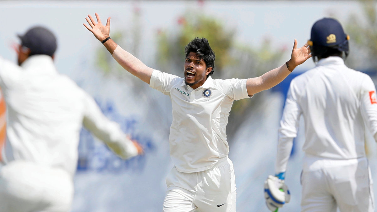 Cricket - Sri Lanka v India - First Test Match - Galle, Sri Lanka - July 27, 2017 - India's cricketer Umesh Yadav appeals for successful wicket for Sri Lanka's Dimuth Karunaratne (not pictured). REUTERS/Dinuka Liyanawatte