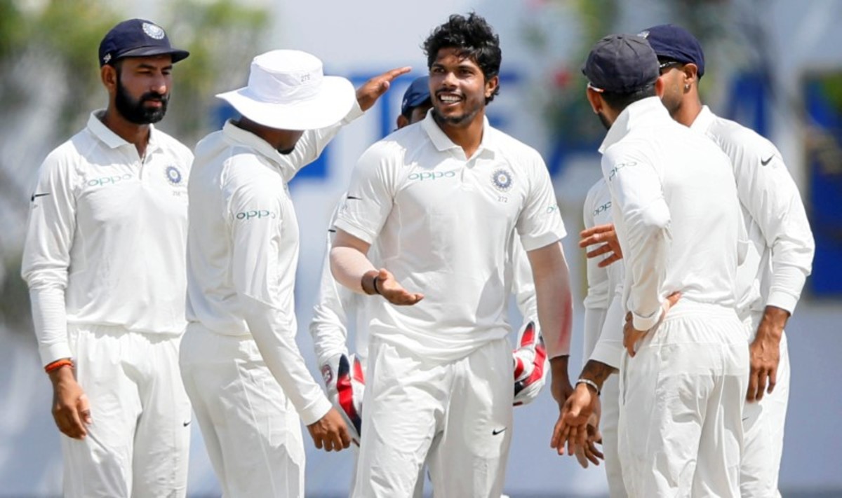 Umesh Yadav dismissed opener Dimuth Karunaratne for two with a fuller delivery and the batsman challenged the leg-before decision but could not overturn it.