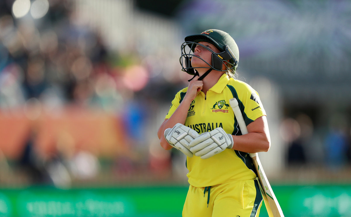 Cricket - Australia vs India - Women's Cricket World Cup Semi Final - Derby, Britain - July 20, 2017 Australia's Alyssa Healy walks after being dismissed by India's Jhulan Goswami Action Images via Reuters/Jason Cairnduff
