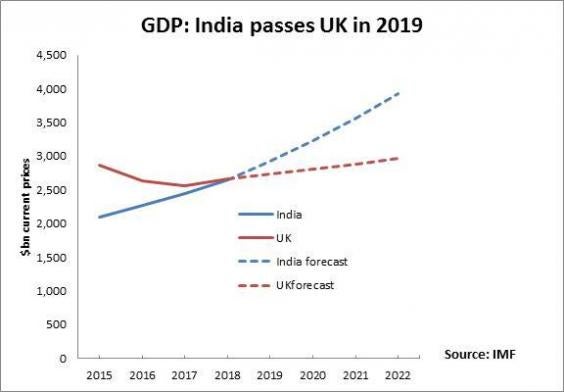Indian GDP, said Mr Jaitley, would grow by between 7 and 7.5 per cent in 2018, which is, if anything a little below independent economic forecasters. Such growth would probably see the Indian economy become larger than the UK’s next year, pushing the former colonial power into 7th place in the global economic rankings.