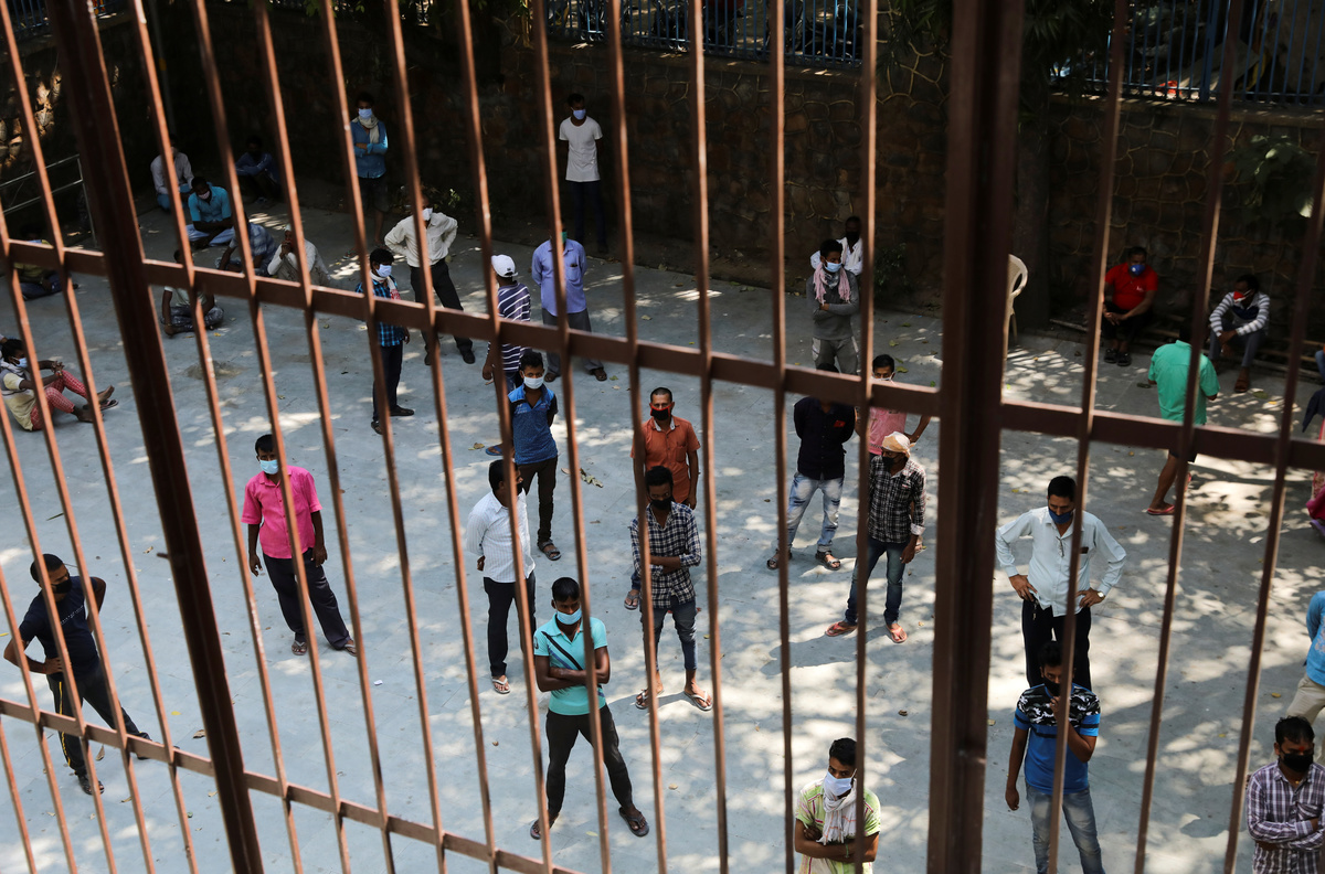 People wearing protective face masks wait for their rapid antigen test results outside a community centre, amidst the spread of the coronavirus disease (COVID-19), in New Delhi, India September 17, 2020. REUTERS/Anushree Fadnavis