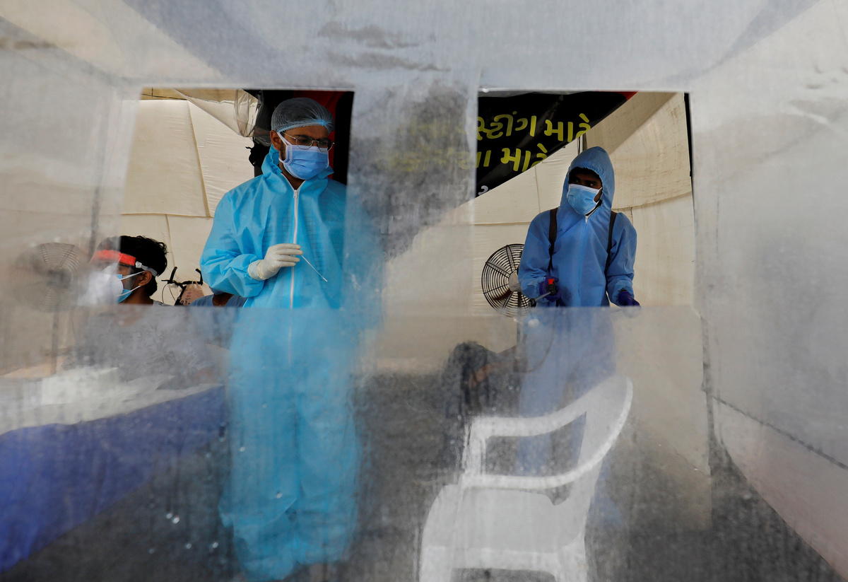 A healthcare worker wearing personal protective equipment (PPE) waits to take swabs from people for rapid antigen test alongside a road, amidst the coronavirus disease (COVID-19) outbreak, on the outskirts of Ahmedabad, India, September 17, 2020. REUTERS/Amit DaveA healthcare worker wearing personal protective equipment (PPE) takes a swab from a man for a rapid antigen test alongside a road, amidst the coronavirus disease (COVID-19) outbreak, on the outskirts of Ahmedabad, India, September 17, 2020. REUTERS/Amit DaveDevotees perform rituals to honour the souls of their departed ancestors on the auspicious day of Mahalaya, amid the spread of the coronavirus disease (COVID-19) in Mumbai, India, September 17, 2020. REUTERS/Francis Mascarenhas