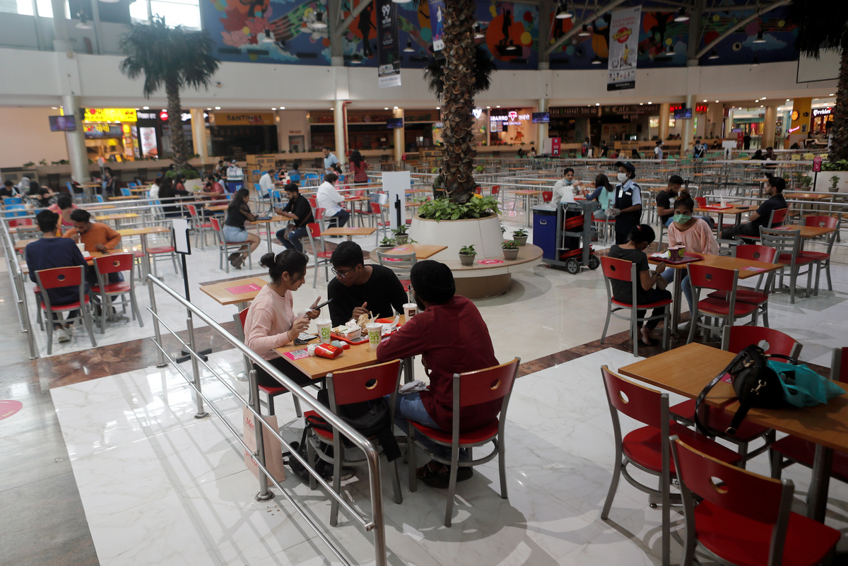 People eat at a food court at a mall after they reopened amidst the spread of the coronavirus disease (COVID-19) in Mumbai, India, October 8, 2020. REUTERS/Francis Mascarenhas