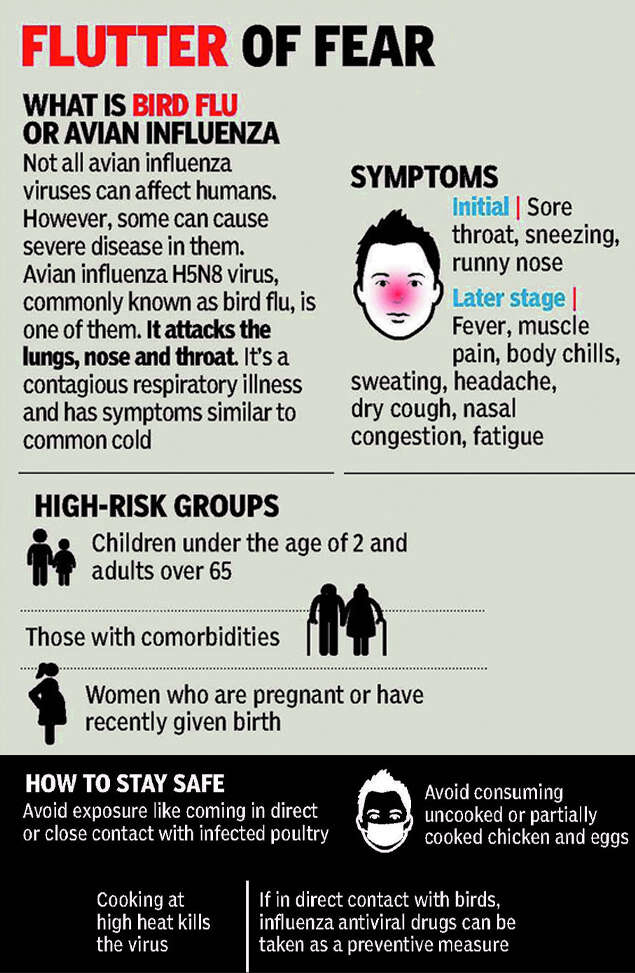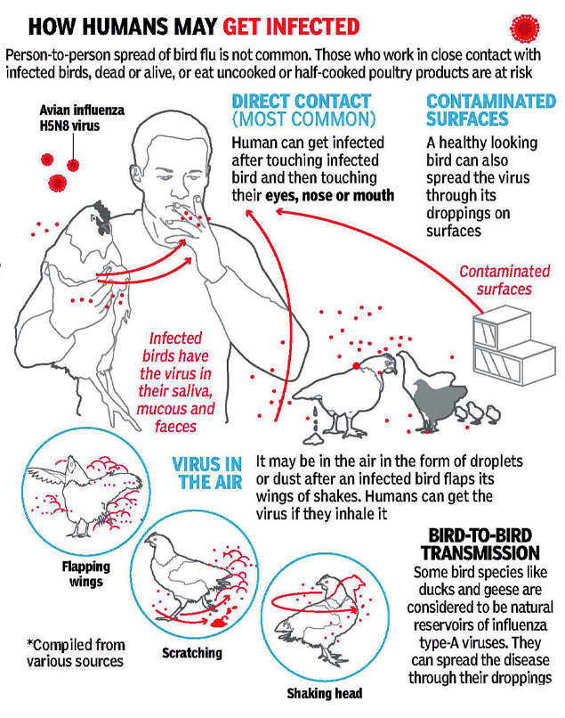 Efforts are also being made to confirm the strain of the influenza virus. “There are many strains of the virus and while some may cause mild symptoms, others are lethal,” said an AIIMS doctor. “NCDC is trying to ascertain the strain of the influenza virus that led to the death.” The doctor added that bird flu was rare in humans but if it affects someone, the risk of death was very high. “Studies show the mortality rate of bird flu in humans is as high as 60%,” he said.