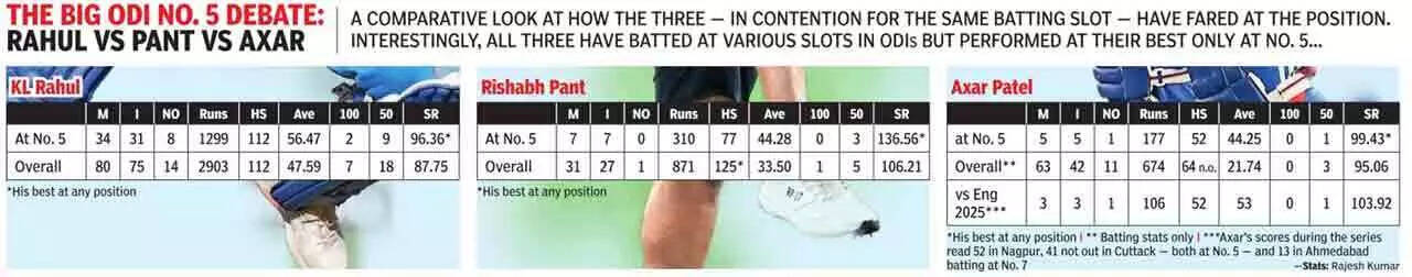 "When the top order collapsed in those big matches, the rest of the batting looked clueless. Hopefully, it isn't the case this time. If they have identified Axar as a No. 5 batter then they must look to give him a run at that number. Axar has done well but the management has to decide if he is going to be a long-term option who can rebuild and dominate an innings till the 2027 World Cup in South Africa," Gandhi said.