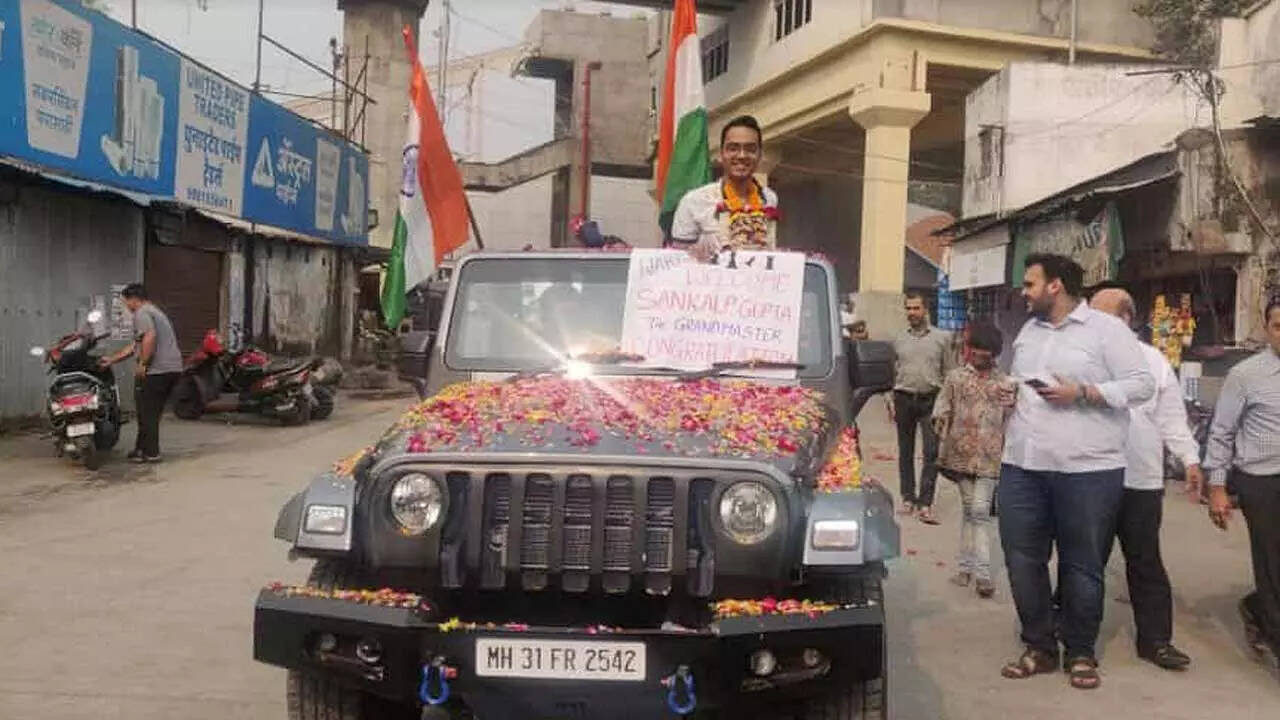 NAGPUR: Three days after becoming India's quickest Grandmaster (GM), Sankalp Gupta was given a hero's welcome after his return to home from Serbia on Wednesday. His friends and family members lined up with garlands, flags, drums and bouquets on his arrival to the city on Wednesday.