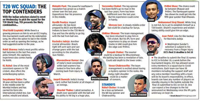 With the Indian selectors slated to meet on Wednesday to pick the squad for the T20 World Cup, TOI presents the likely combination.