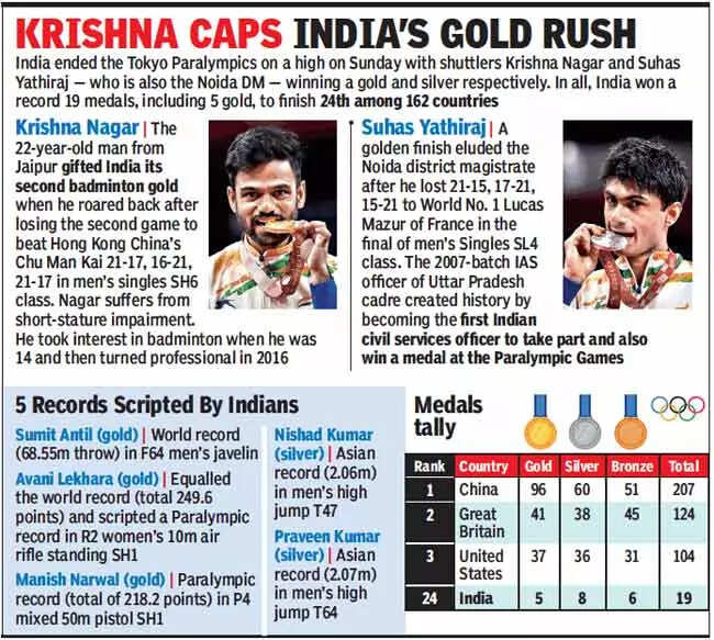 Promises made, promises kept. It's time to say sayonara. Tokyo has been richly rewarding for Indian athletes, and all good things must come to an end. Of course, there's that temptation to sign off with one final flourish. So, on an overcast, drizzly Sunday, para shuttlers Krishna Nagar and Noida's district magistrate Suhas Yathiraj did just that.