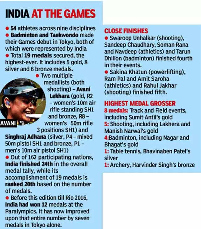 India had sent its largest contingent-ever with 54 para athletes competing in nine sporting disciplines. Seventeen of them left Tokyo with medals, including multiple winners - shooters Avani Lakhera (gold-bronze) and Singhraj Adhana (silver-bronze).