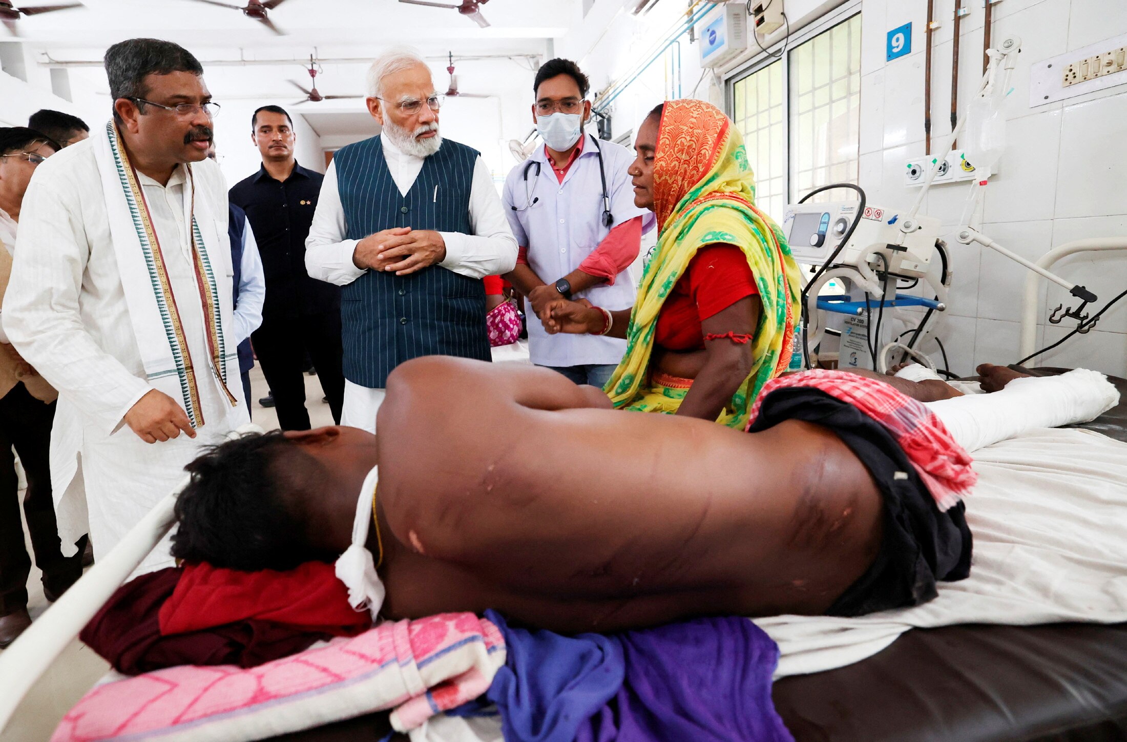 On Saturday, Mr Modi viewed the mangled wreckage and offered condolences to the families of those killed and visited some of the hundreds of injured.