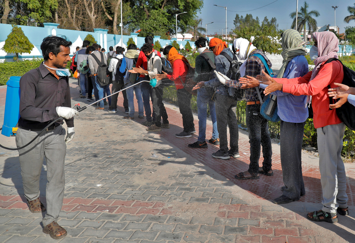In the northern state of Uttar Pradesh, health workers dressed in protection suits sprayed disinfectant on a group of migrant workers who were also trying to make the journey home to their villages, local television showed. They were made to sit on a street corner in the Bareilly district and doused with hose pipes, prompting anger on social media.
