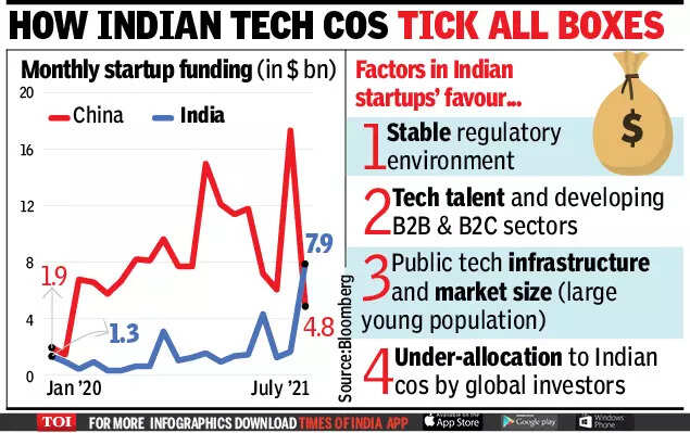 MUMBAI: Global venture capitalists and private equity investors are allocating more funds to India as China steps up regulatory clampdown on its tech companies.