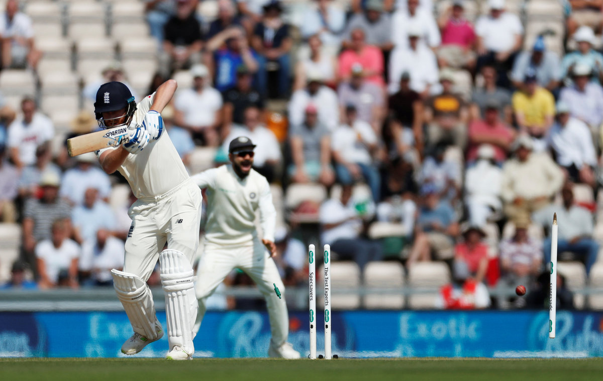 Shami claimed another success with the first ball after lunch when he bowled Jonny Bairstow with a delivery the batsman completely misjudged.