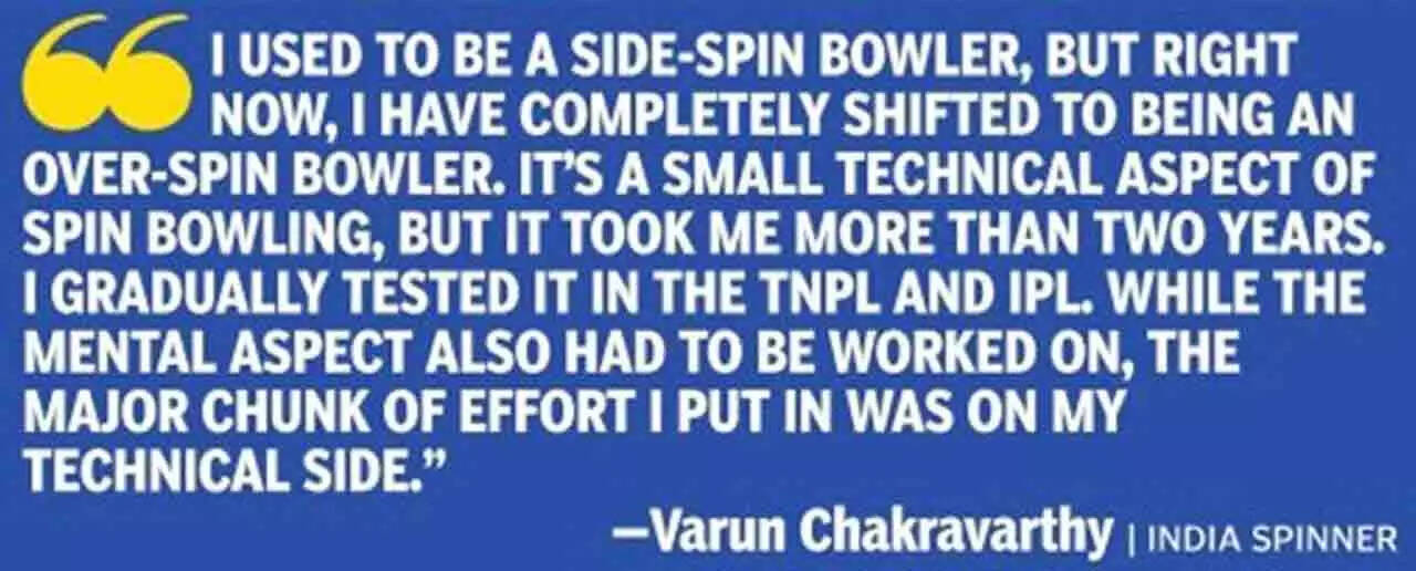 Explaining how a technical adjustment helped him rediscover his form, Varun said, "I used to be a side-spin bowler, but right now, I have completely shifted to being an over-spin bowler. It's a small technical aspect of spin bowling, but it took me more than two years. I gradually tested it in the TNPL and IPL. While the mental aspect also had to be worked on, the major chunk of effort I put in was on my technical side."