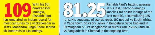 This was Pant's first Test since his comeback from a life-threatening injury a couple of years ago. And the wicketkeeper-batter hasn't put a foot wrong so far in this game. The Saturday show once again was an exhibition of his versatility as he brought his 360 degree game to the fore. The bowling was lacking the bite and Najmul dropped one sitter that he offered on 72, but that doesn't take anything away from the shots he played.