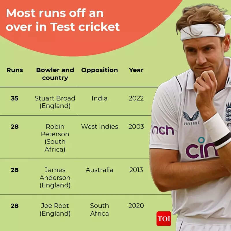 Coming in to bat at No. 10, India's stand-in captain Jasprit Bumrah made light of a bowler of Broad's calibre, hitting him for four boundaries and two sixes in an over, while six runs came off extras.