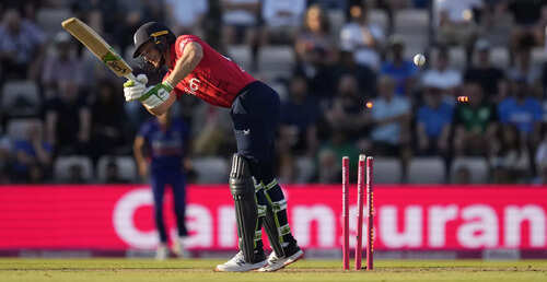 <p>Bhuvneshwar Kumar (1/10) got the big wicket of new England T20I captain Jos Buttler by cleaning him up for a first-ball duck - AP Photo</p>9/10:Partnership