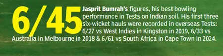 Bumrah had Joe Root in two minds and induced an edge with one that reversed to scalp him for the eighth time and then he cranked up the pace. Pope had no answer to a 140 kph delivery that uprooted his middle and leg stumps, and in a matter of 16 minutes, Bumrah left the England top order in total disarray with his second spell of 4-2-3-2. He was not done yet.