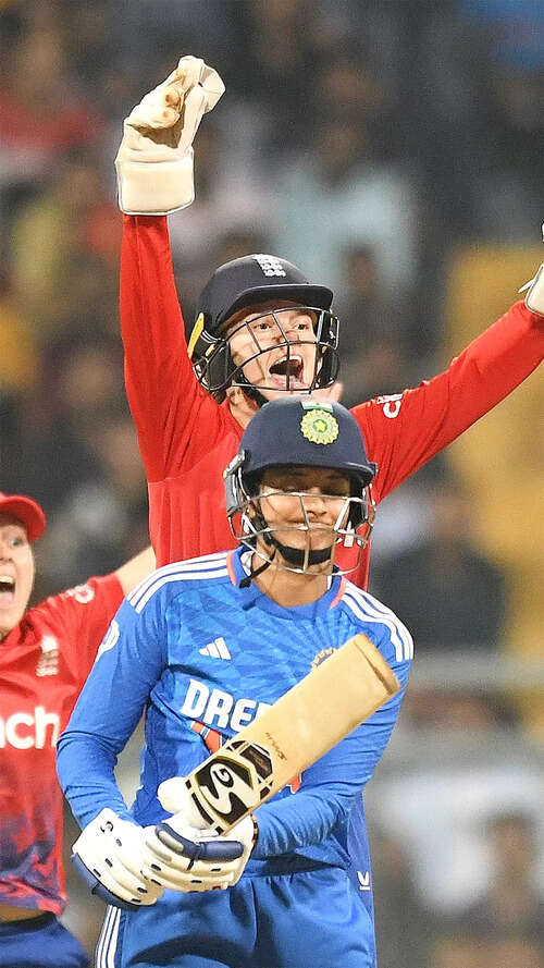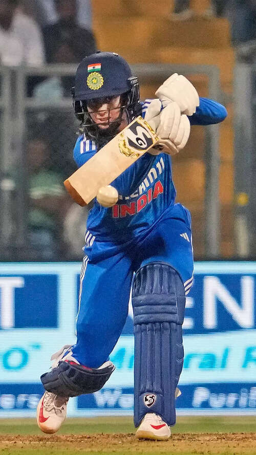 <p>The English bowlers never looked back thereafter and kept picking wickets at regular intervals. </p>AP9/10:Smriti Mandhana