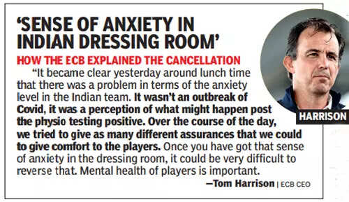 “It wasn’t an outbreak of Covid, it was a perception of what might happen post the physio testing positive. Over the course of the day, we tried to give as many different assurances that we could to give comfort to the players," ECB CEO Tom Harisson was quoted as saying after the Test was finally cancelled.