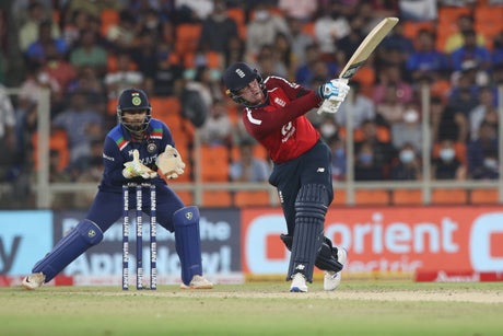 Buttler survived a close lbw shout from Patel before fully joining the fun, but followed by stroking a boundary through cover and hammering a huge six over long-on. At the end of the powerplay, the pair had wiped exactly 50 from the target and all but settled the result.