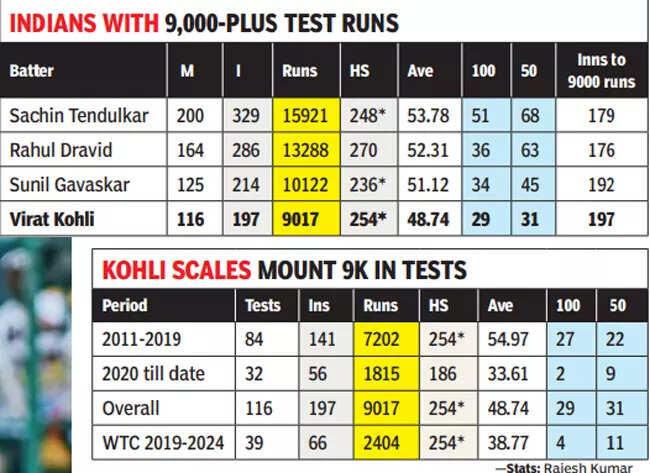 Unlike Thursday, there were no infamous records. Instead, Virat Kohli became the fourth Indian after Sachin Tendulkar, Rahul Dravid and Sunil Gavaskar to cross 9,000 runs in the format. Kohli and Sarfaraz turned the last session into a visual treat, until Glenn Philips dealt a body blow securing Kohli’s edge. A review only confirmed Kohli’s departure.