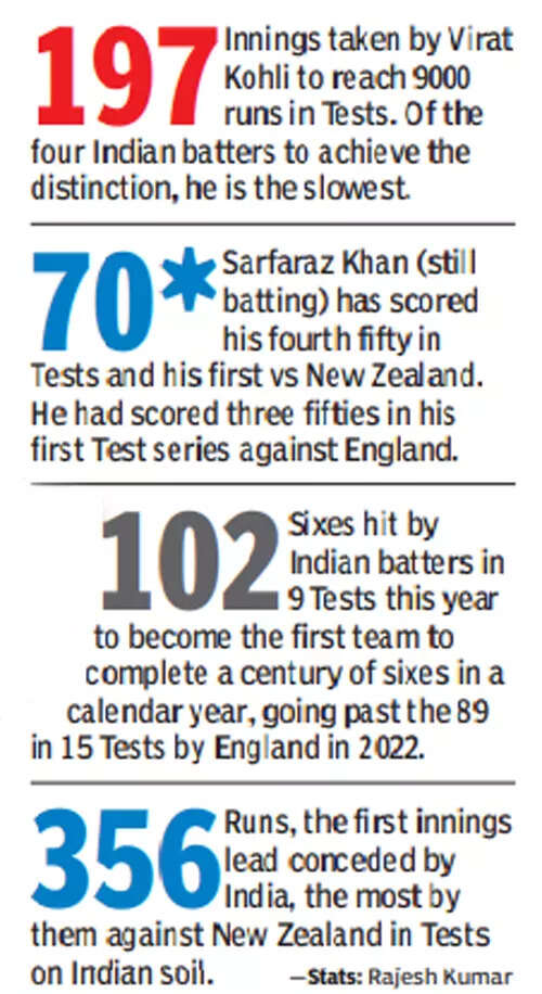BENGALURU: The swagger with which India’s top-order batters went about their business at the M Chinnaswamy stadium here on Friday against New Zealand was quite unlike a team that is looking to save a Test. After all, they had just conceded a 356-run first-innings deficit.