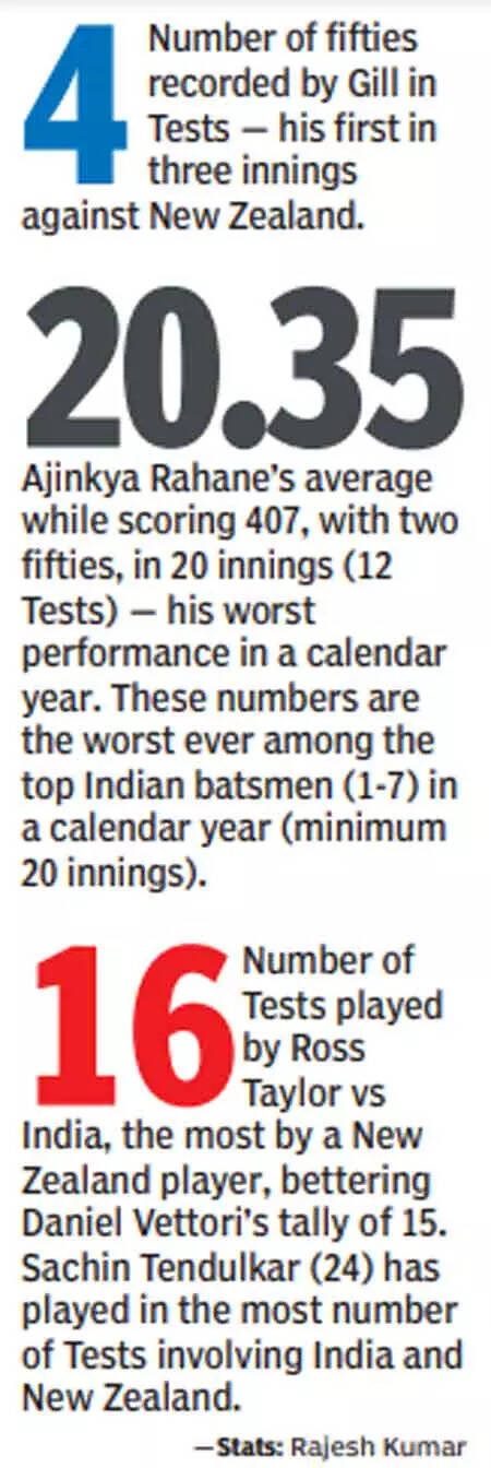 India went in with five specialist batters. Captain Ajinkya Rahane and vice-captain Cheteshwar Pujara have 78 and 90 Tests behind them; Mayank Agarwal, fighting to win his place back, is playing his 15th Test, Gill is playing his 9th Test and Iyer is making his debut.