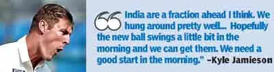 Yet, Southee and Jamieson had the Indians in a bind with conventional seam bowling to start with before resorting to reverse swing. Jamieson got Agarwal caught behind with the new ball and came back with the semi-new ball to knock over a set Gill.