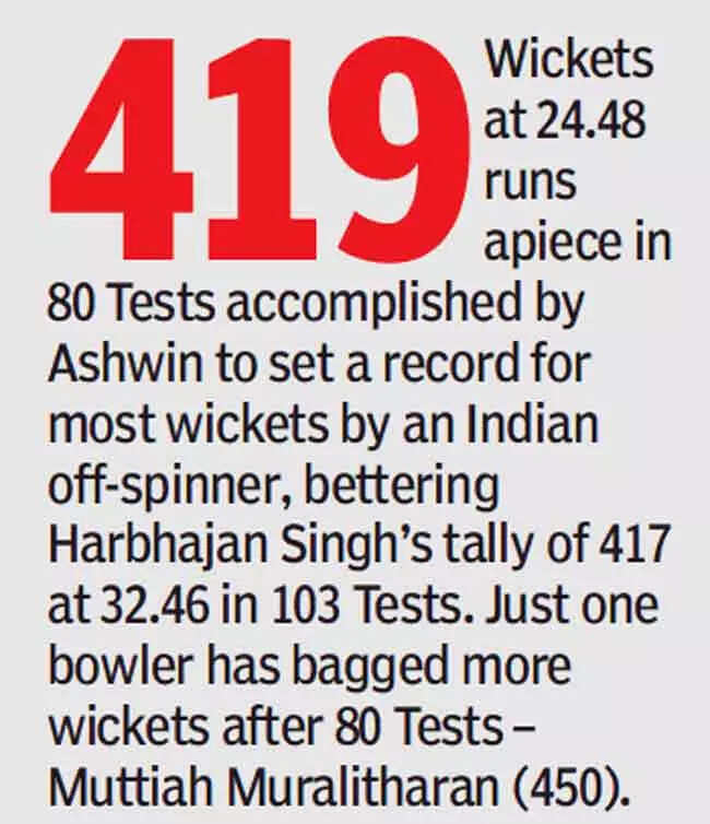Ravichandran Ashwin has gone past Harbhajan Singh's record of 417 Test wickets. He has taken 23 less Tests than Harbhajan to become India's third-highest wicket-taker in Test cricket. The toil to get to the landmark on Monday on a rather benign Green Park pitch saw him showcase every component from his repertoire. But Ashwin and Indian spinners had just low bounce to work with.