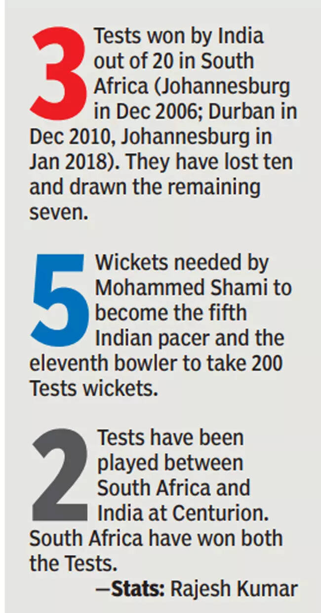 Only two players have played more than 50 Tests, Dean Elgar (69) and Quinton de Kock (53), while pacer Kagiso Rabada (47) comes close. India have seven players in that category. As many as 10 of India’s squad have toured SA before. Elgar and de Kock, incidentally, are the only two SA batters with centuries at home in the last three years.