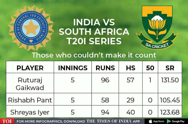 Ruturaj Gaikwad: Ruturaj Gaikwad scored 4 more runs than Dinesh Karthik (92) in the series, but when you are playing in the team in place of a proven performer, a batting great, at a spot where the team already has a handful of options, you have to pile up big scores to make your mark.