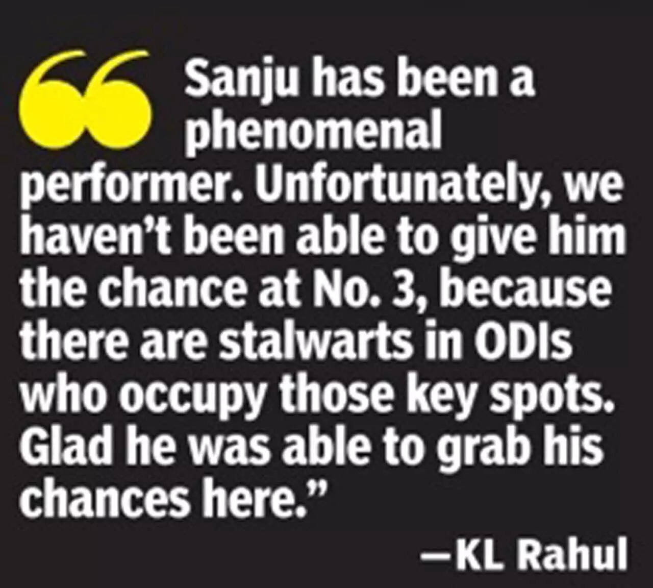 KL Rahul, India's skipper for the ODI series, even admitted that Samson hasn't received enough opportunities at the top of the order.