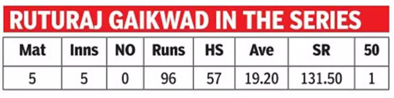 With a clutch of Indian stars either taking a break or injured, Gaikwad should have made it count in this series but numbers tell the true story. Having opened in all five innings of this series, Gaikwad managed 96 runs (9x4; 5x6) averaging 19.20.