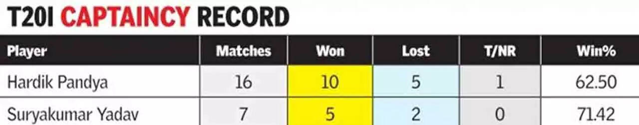 TOI understands that the think-tank has to decide between Hardik Pandya and Suryakumar Yadav. According to sources, Surya has been deemed as a more stable candidate to lead the team.