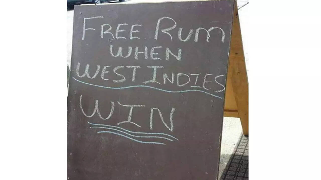 Subsequently, in anticipation of West Indies' series victory, a fan put out a tweet that shows a sign board reading: 'Free rum when West Indies win."