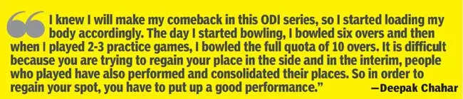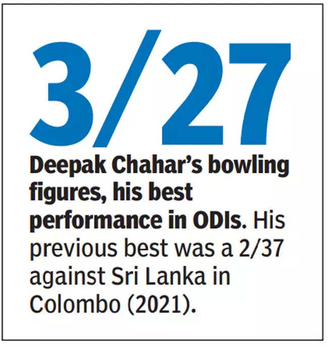 Donning the blue jersey for the first time in six months after a long injury lay-off, Chahar hit the straps right away with figures of 3/27, which was instrumental in India restricting Zimbabwe to a sub-par 189 in just 40.3 overs.