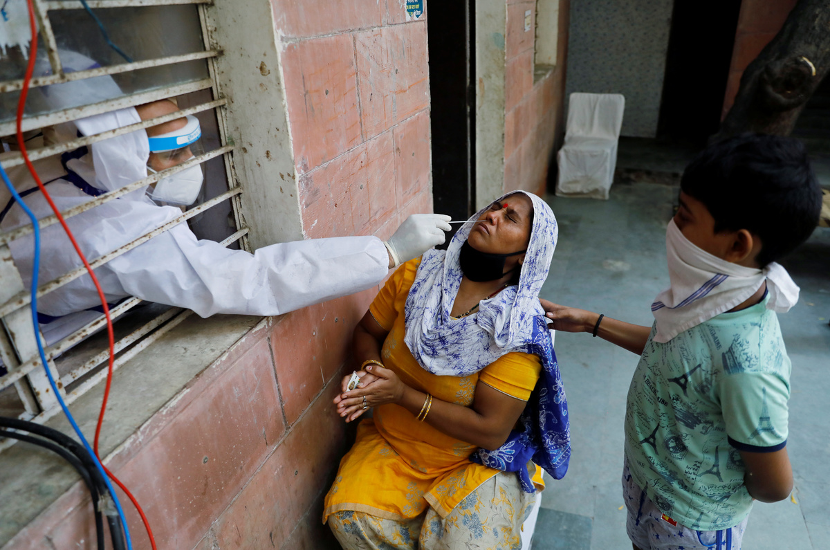 A boy reacts as a medical worker collects a sample from him at a centre to conduct tests for the coronavirus disease (COVID-19), amidst its spread in New Delhi, India June 25, 2020. REUTERS/Anushree FadnavisA man sprays disinfectant to sanitize a house to prevent the spread of the coronavirus disease (COVID-19) in a residential area in Ahmedabad, India, June 25, 2020. REUTERS/Amit DaveA girl reacts as a medical worker collects a sample from her at a centre to conduct tests for the coronavirus disease (COVID-19), amidst its spread in New Delhi, India June 25, 2020. REUTERS/Anushree FadnavisWorkers make a platfrom for air conditioners at the campus of Radha Soami Satsang Beas, a spiritual organization, where a coronavirus disease (COVID-19) care centre has been constructed for the patients amidst the spread of the disease, in New Delhi, India, June 25, 2020. REUTERS/Danish SiddiquiWorkers make disposable beds out of cardboard at the campus of Radha Soami Satsang Beas, a spiritual organization, where a coronavirus disease (COVID-19) care centre has been constructed for the patients amidst the spread of the disease, in New Delhi, India, June 25, 2020. REUTERS/Danish SiddiquiA medical worker collects a sample from a woman at a centre to conduct tests for the coronavirus disease (COVID-19), amidst its spread in New Delhi, India June 25, 2020. REUTERS/Anushree FadnavisWorkers prepare to carry air conditioners at the campus of Radha Soami Satsang Beas, a spiritual organization, where a coronavirus disease (COVID-19) care centre has been constructed for the patients amidst the spread of the disease, in New Delhi, India, June 25, 2020. REUTERS/Danish SiddiquiA worker rests as others make disposable beds made out of cardboard at the campus of Radha Soami Satsang Beas, a spiritual organization, where a coronavirus disease (COVID-19) care centre has been constructed for the patients amidst the spread of the disease, in New Delhi, India, June 25, 2020. REUTERS/Danish SiddiquiA medical worker collects a sample from a woman at a centre to conduct tests for the coronavirus disease (COVID-19), amidst its spread in New Delhi, India June 25, 2020. REUTERS/Anushree FadnavisA man sprays disinfectant to sanitize an abandoned house to prevent the spread of the coronavirus disease (COVID-19) in a residential area in Ahmedabad, India, June 25, 2020. REUTERS/Amit DaveA girl reacts as a medical worker collects a sample from her at a centre to conduct tests for the coronavirus disease (COVID-19), amidst its spread in New Delhi, India June 25, 2020. REUTERS/Anushree FadnavisA medical worker collects a sample from a woman at a centre to conduct tests for the coronavirus disease (COVID-19), amidst its spread in New Delhi, India June 25, 2020. REUTERS/Anushree FadnavisWorkers make disposable beds out of cardboard at the campus of Radha Soami Satsang Beas, a spiritual organization, where a coronavirus disease (COVID-19) care centre has been constructed for the patients amidst the spread of the disease, in New Delhi, India, June 25, 2020. REUTERS/Danish Siddiqui