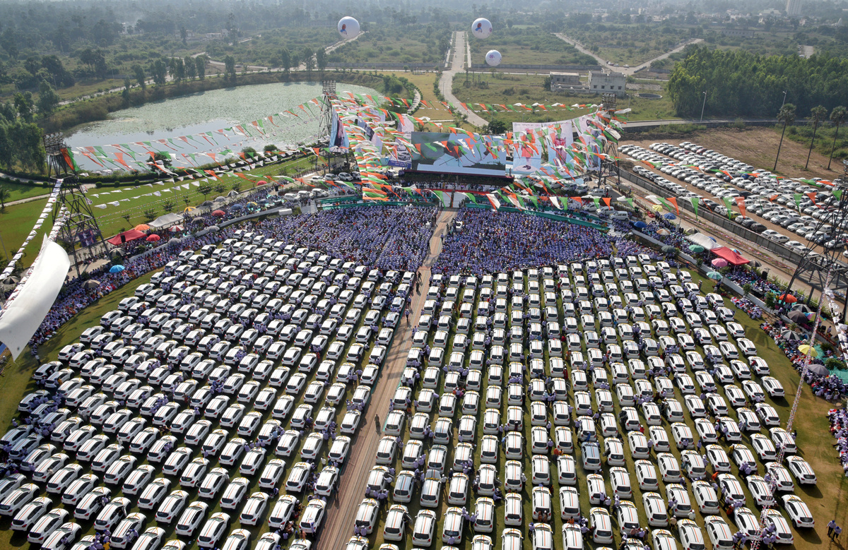 Six hundred employees of Hari Krishna Exporters, a diamond trading company run by Savji Dholakia, received cars made by Indian manufacturer Maruti Suzuki, while around a thousand more staff were offered gifts of cash deposits and apartments in a huge outdoor ceremony in Surat, Gujarat.