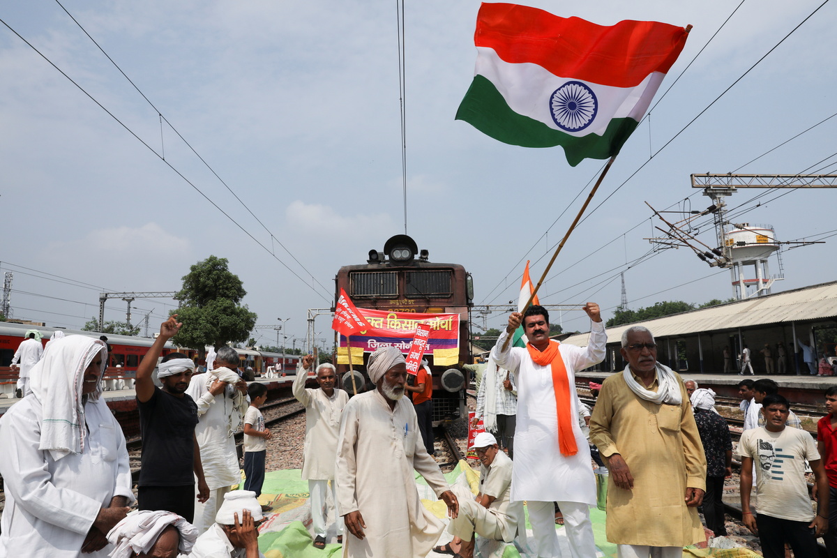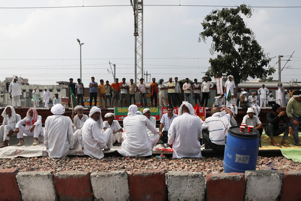 In Gurgaon - another satellite town near the capital's main airport - farmers thronged onto a road and blocked traffic, while protesters stormed into a railway station in the northern outskirts of New Delhi, a Reuters witness said.