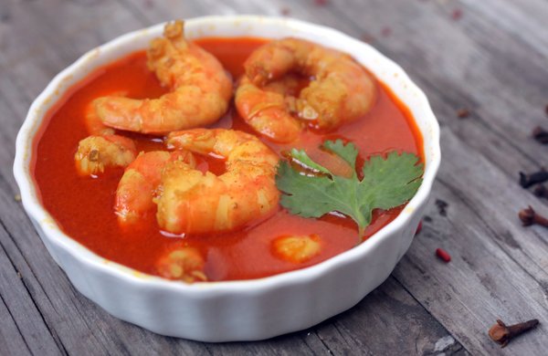 In place of the tamarind paste, I added honey and lemon. It's not as good or as fruity as the tamarind would be, but once the shrimp start simmering in the curry you just know that it is going to be spectacular.