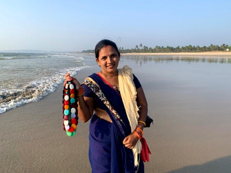 Seema Rajgarh, 37, is a lonely figure on nearly deserted Utorda beach in South Goa, her blue sari set against the expanse of the Arabian sea as she hawks jewelry made of beads and stones. None of the handful of domestic tourists is interested in buying them.
