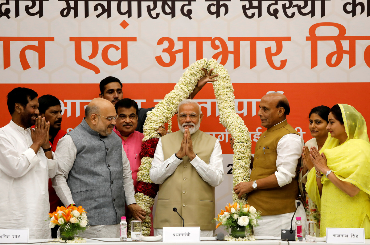 Official data from India's Election Commission showed Modi's Hindu-nationalist Bharatiya Janata Party (BJP) ahead in 298 of the 542 seats available, up from the 282 it won in 2014 and more than the 272 seats needed for a majority in the lower house of parliament.