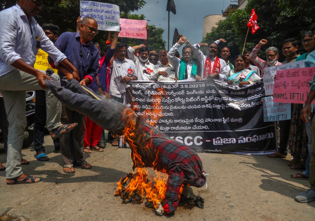 “They were beaten to death by the farmers,” Mishra said in a statement.