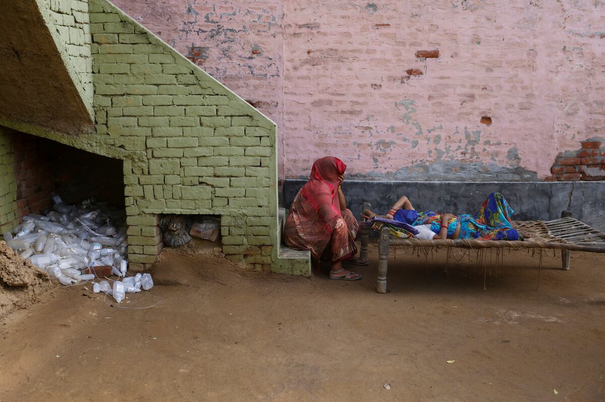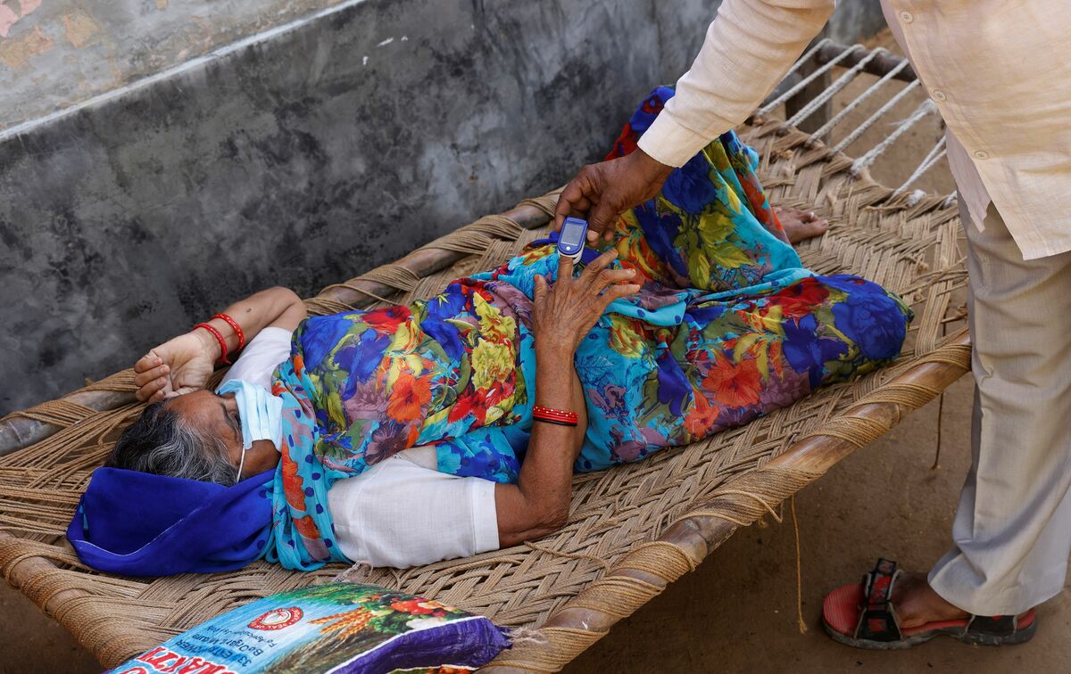 An Indian former hospital worker with no medical education is running a small unlicensed clinic, tending to patients with breathing difficulties and checking their oxygen levels as they lie on cots on the mud floor.